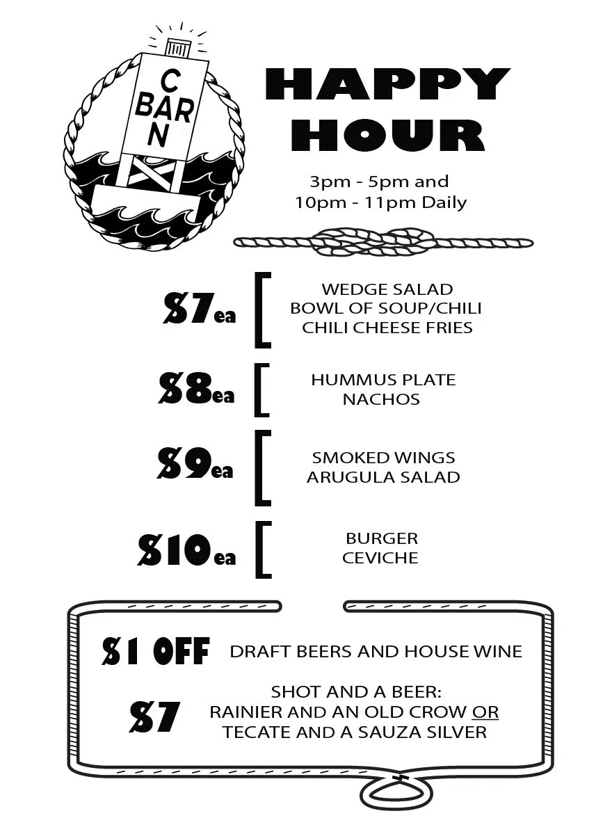 Can Bar's interior is nautically-themed and relaxed. The distinctive bar (and many pieces of furniture) are constructed from the 26’ 1960 Owens Pleasure Craft wooden boat seen above, reflecting the bar’s theme and workingman sensibilities of White Center. The food and sauces at Can Bar are made entirely in-house using classic techniques that elevate but are never stuffy.